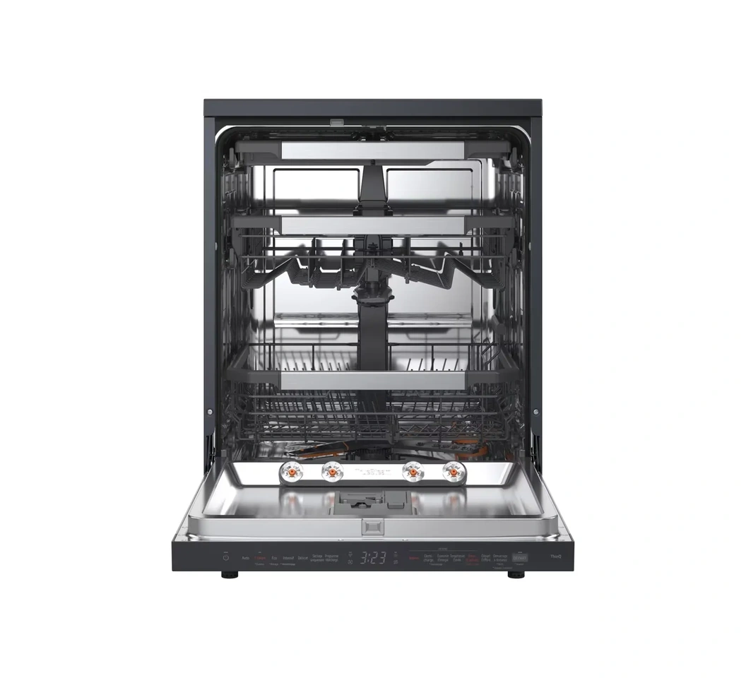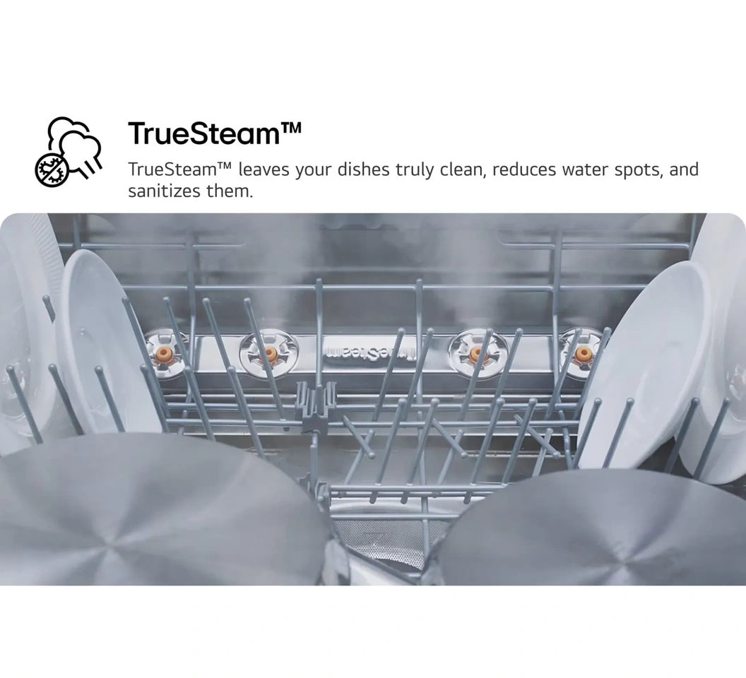Furthermore, the QuadWashâ„¢ system is designed to operate quietly. Despite its powerful water jets, the motor is tuned to reduce turbulence and vibration. This ensures that even when the machine is working through its most intense cycle, the noise level remains low enough to hold a conversation in the kitchen without interruption.The result of these combined technologies is a “one-and-done” cleaning experience. You won’t find yourself re-washing plates or scrubbing dried-on bits after the cycle ends. LG’s focus on steam and multi-angle washing sets a high bar for cleaning performance, ensuring professional-grade results in a residential setting.