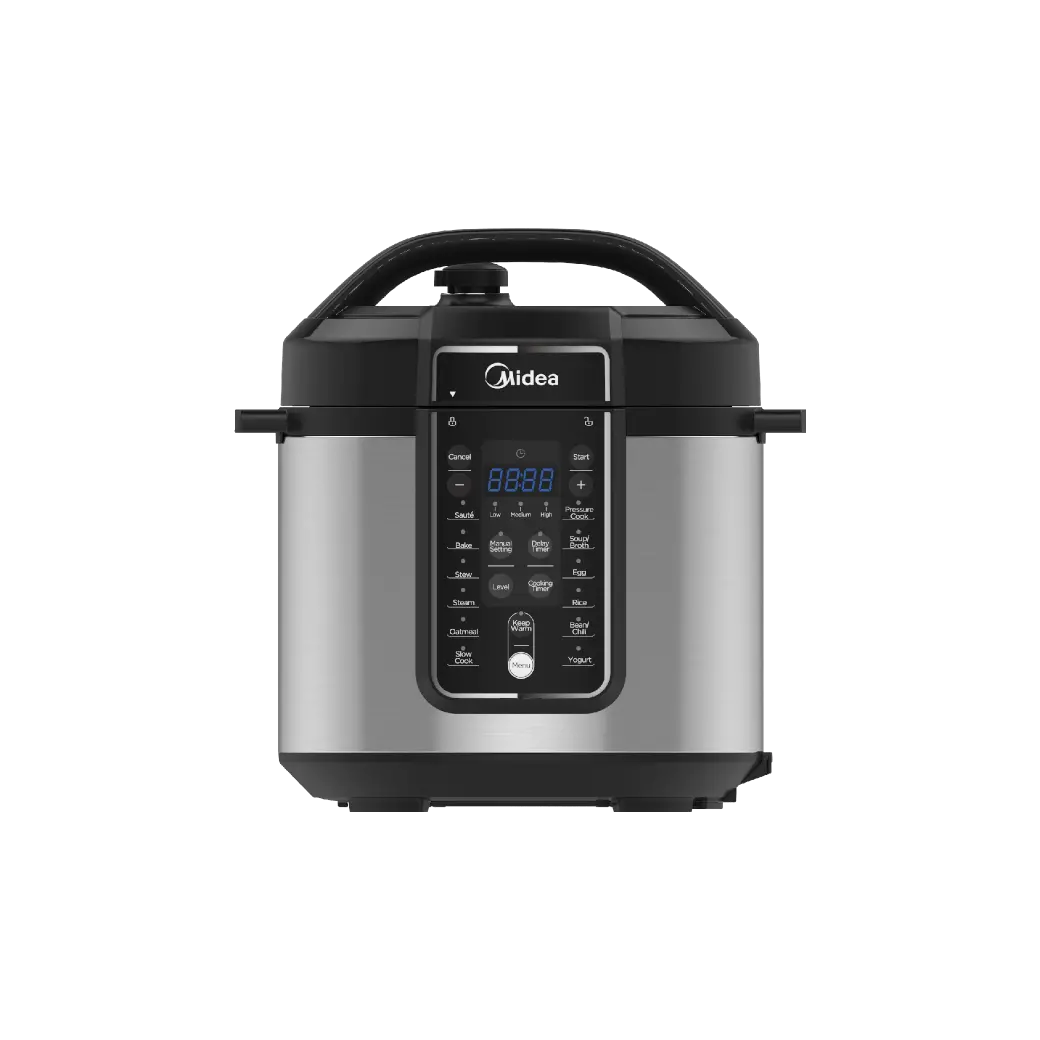 The Midea pressure cooker features an intuitive control panel with clear buttons and digital display. Users can easily select cooking modes, adjust time and temperature, and monitor progress.