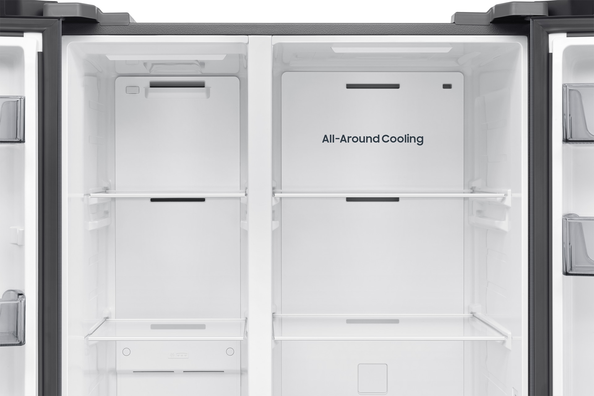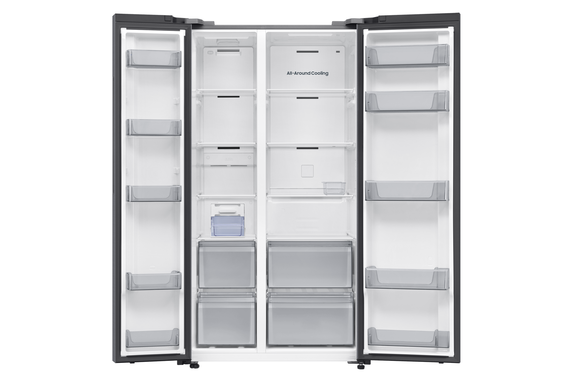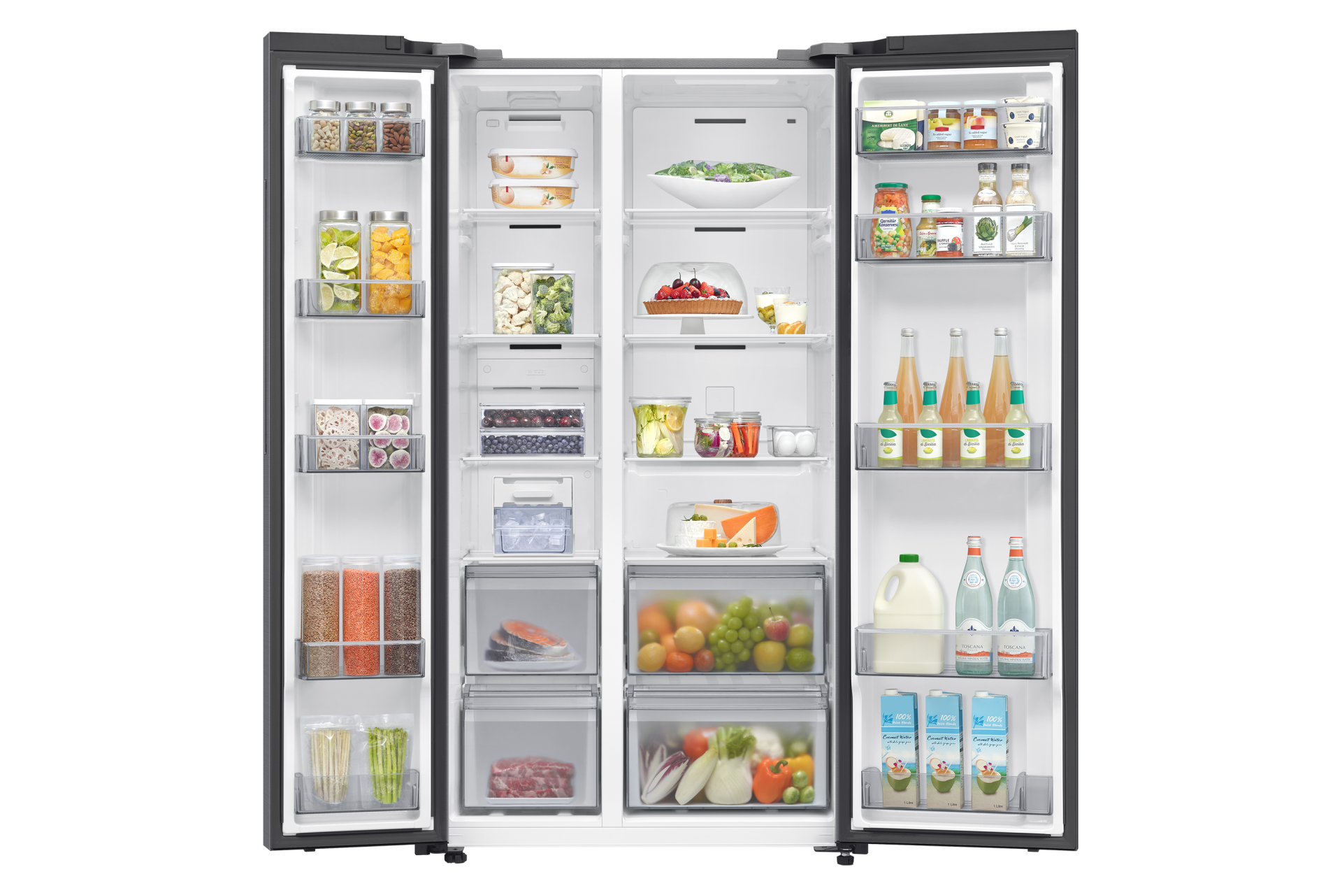 With an impressive 655L storage capacity, the Samsung RS70F65Q3TUT Side by Side Refrigerator is designed to accommodate all your grocery needs, whether you’re stocking up for a big family meal, prepping for a party, or just managing everyday essentials. It’s a fantastic choice for larger families in Kenya or anyone who loves to entertain. You can easily fit everything from full meat trays and a variety of beverage bottles to extra fruits and leftovers. The layout is smartly organized with deep door bins, adjustable shelves, and spacious compartments, making it a breeze to keep things tidy and grab what you need quickly. Whether you’re planning for a week or a month, you’ll have plenty of room without cramming everything in.