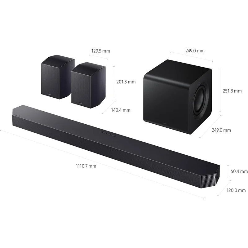 * Wireless Dolby Atmos transmission via Wi-Fi, works with 2022-2025 Samsung TVs. Dolby Atmos source content required.