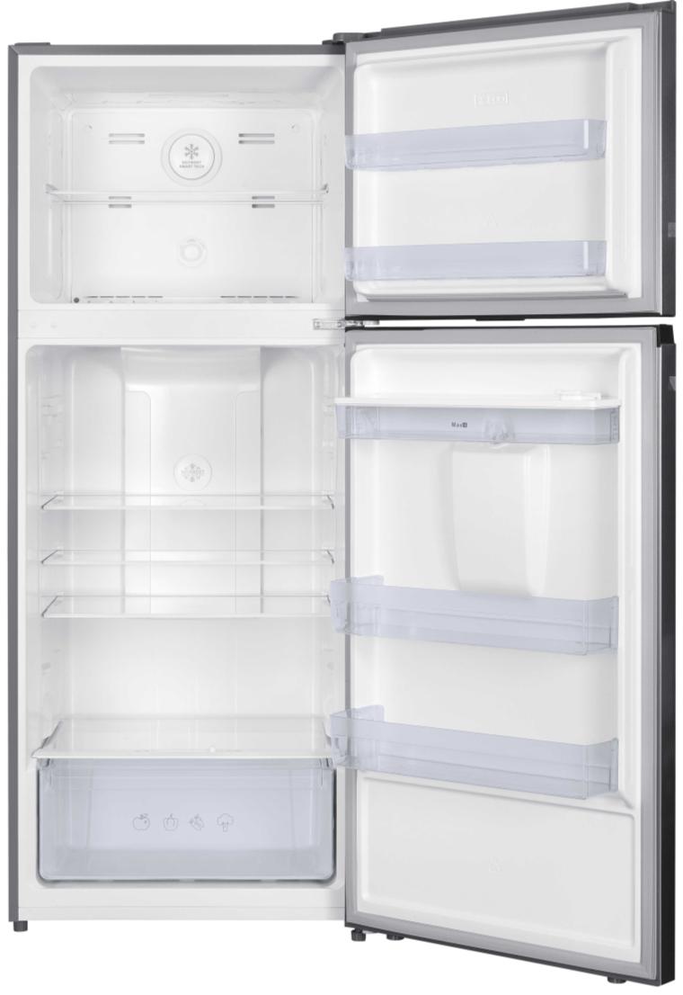 This refrigerator’s No Frost cooling system eliminates the need for manual defrosting, preventing ice buildup in both compartments and keeping the interior clean and easy to maintain. The multi-airflow cooling system distributes cold air evenly across all sections, ensuring that every item—whether on the top shelf or bottom drawer—receives consistent cooling. This feature not only maintains uniform temperatures but also extends the shelf life of stored food.
