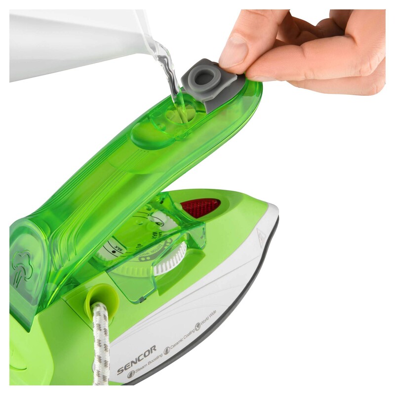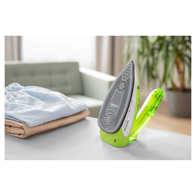 The soleplate of the Sencor SSI1050GR is designed to glide smoothly over garments, reducing resistance and protecting fabric surfaces. This smooth motion helps prevent snags and fabric damage during ironing.